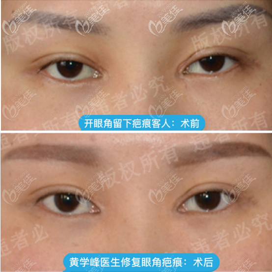 惠州詩(shī)璐醫(yī)療美容黃學(xué)峰醫(yī)生“黃氏法”無(wú)痕開(kāi)眼角案例對(duì)比效果圖: