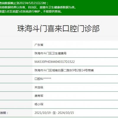 珠海牙牙樂口腔門診部位于珠海市金灣區(qū)三灶鎮(zhèn)西湖城區(qū)依云路61號。衛(wèi)健委登記號:MA559YFB844040417D1522 ,是珠海正規(guī)的牙科門診之...