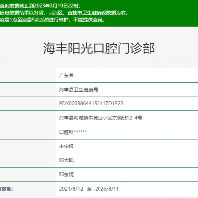 汕尾海豐陽光口腔怎么樣?可從院內的資質一探究竟。海豐陽光口腔是海豐比較好的牙科之一。從衛(wèi)建委相關資質可以看出,海豐陽光口腔是一家正規(guī)口腔牙科。汕尾海豐陽光口腔門...