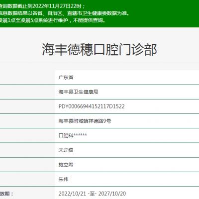 汕尾陸河愛雅仕口腔是正規(guī)醫(yī)院嗎?愛雅仕口腔是正規(guī)機構,咱們一起來看汕尾陸河愛雅仕口腔資質情況。省份:廣東省審批機關:陸河縣衛(wèi)生健康局登記號:PDY0000114...