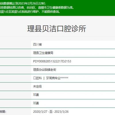 阿壩理縣貝潔口腔診所也是當(dāng)?shù)貙嵙Σ诲e的機構(gòu),已經(jīng)被理縣衛(wèi)生健康局批準(zhǔn)成立,是正規(guī)的牙科單位,也是阿壩地區(qū)可以開展多種口腔問題的牙科。阿壩理縣貝潔口腔診所資質(zhì):省...