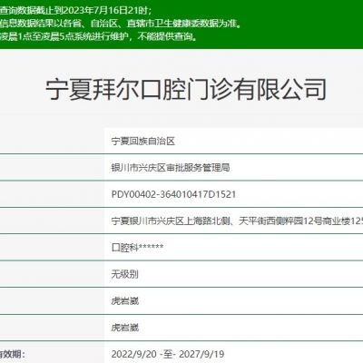 寧夏銀川拜爾口腔門診部是一家具備正規(guī)資質(zhì)的牙科機(jī)構(gòu),提供全方面的口腔診療服務(wù)。以下是寧夏銀川拜爾口腔門診部相關(guān)介紹:【寧夏銀川拜爾口腔門診部基礎(chǔ)信息】:1、銀川...